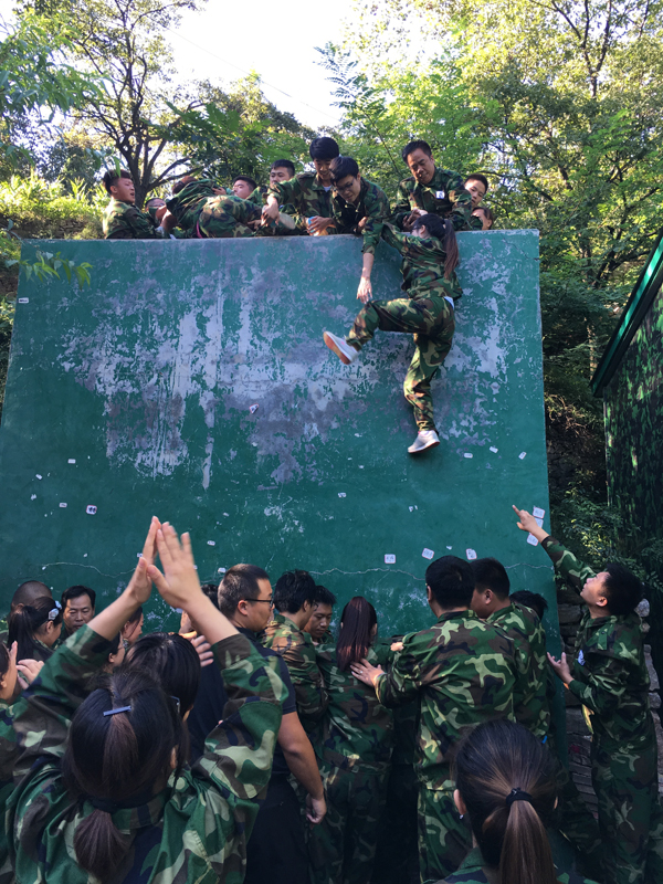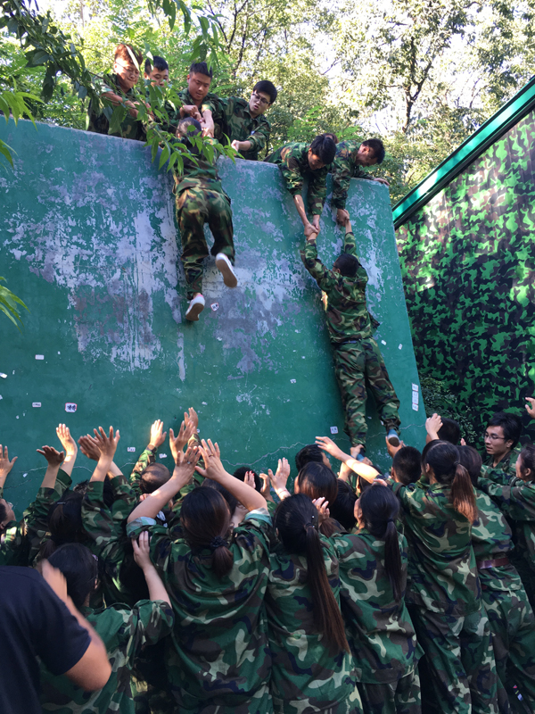 面對***后的逃生墻時,大家甘當人梯的精神,深深的感動了我,大家干勁十足,在吶喊的加油聲中,男生們努力的抓住每一雙手,我們踩在他們的背上,膝蓋上不斷的攀爬,那一刻他們用自己的臂膀支撐著我們完成***后的挑戰!